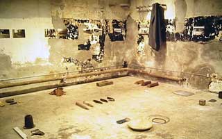 In einem funktionslosen Kellerraum wurden die einzelnen Gegenständen in neu arrangierten Gruppen auf dem Boden gezeigt und die Fotodokumentation der Fundorte an den Wänden präsentiert. 1998