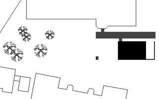 Der Entwurf reagiert auf die gegebene Hofsituation durch parallele Anordnung eines Erschließungselementes zwischen Bestand und Kapelle mit Glockenturm.